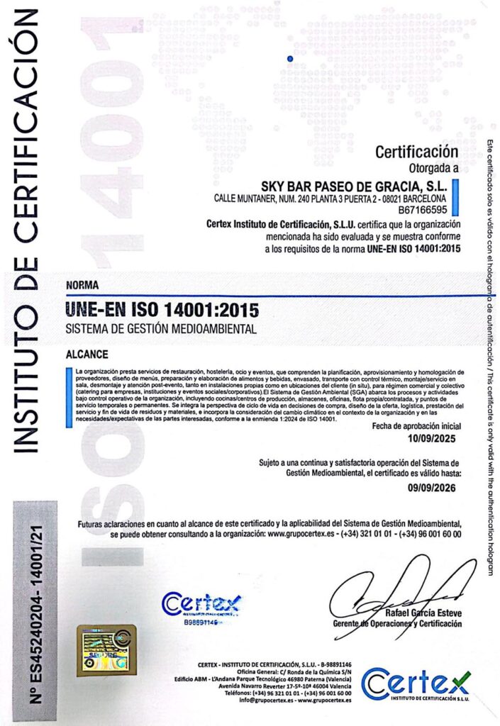 Conforme a ISO 14001:2015 + Amd.1:2024 (cambio climático) y LocalScore (NT 2705/21) + Km0 (NT 27004/18)